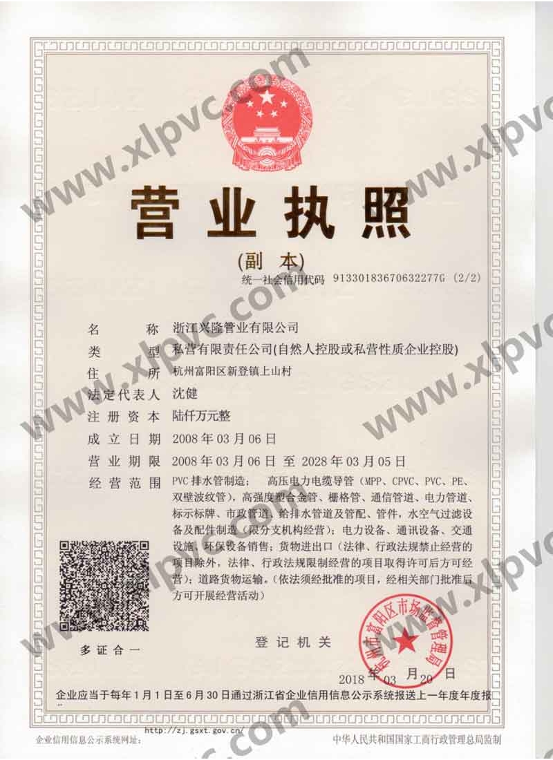 浙江興隆管業(yè)有限公司位于杭州市富陽(yáng)區(qū)(杭州第九新區(qū)),坐落在新登鎮(zhèn),相距杭州僅60公里,水、陸、空交通運(yùn)輸十分便利。浙江興隆管業(yè)有限公司前身為富陽(yáng)興隆塑料制品廠(chǎng),成立于1992年,2008年改名浙江興隆管業(yè)有限公司,數(shù)十年來(lái),公司一直至力于管道的生產(chǎn),目前公司擁有國(guó)內(nèi)先進(jìn)的CPVC保護(hù)管生產(chǎn)線(xiàn),HPVC()雙壁波紋管生產(chǎn)線(xiàn),多孔管生產(chǎn)線(xiàn),玻璃鋼電纜保護(hù)管生產(chǎn)線(xiàn)、MPP電纜保護(hù)管生產(chǎn)線(xiàn)。生產(chǎn)的主要產(chǎn)品有:CPVC電纜保護(hù)管、MPP電力電纜保護(hù)管(頂管)、高強(qiáng)度塑合金管、HDPE給排水管、HPVC()雙壁波紋管、玻璃鋼電纜保護(hù)管、埋地通信用的PVC-U多孔管、PE直壁管、PVC-U雙壁波紋管、梅花管等,年生產(chǎn)能力達(dá)20000萬(wàn)米。