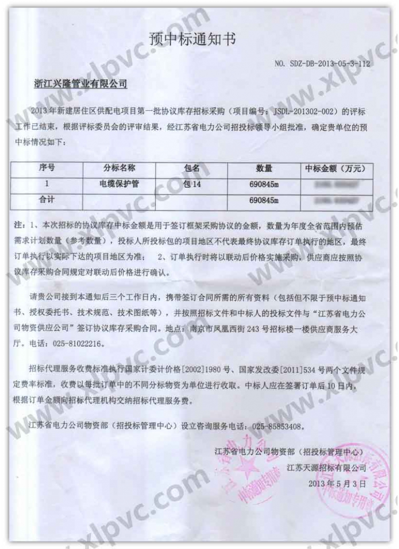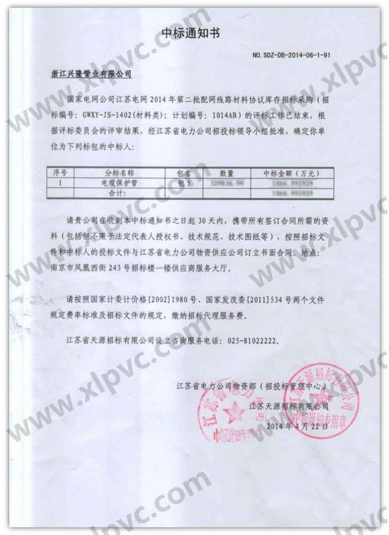 中標通知書